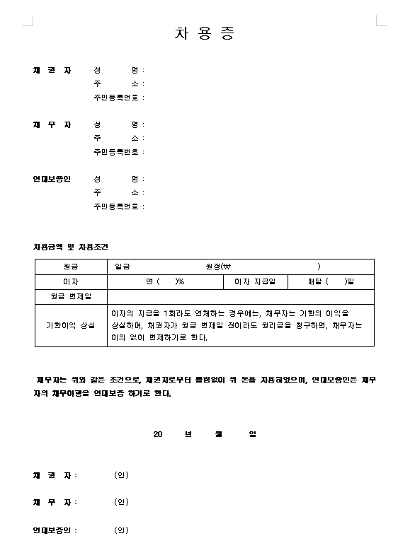 ▼▼▼지금 차용증 양식 무료로 다운로드! 한 번의 클릭으로 자신의 돈을 안전하게 지키세요.▼▼▼