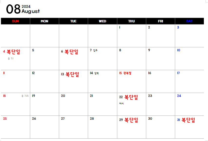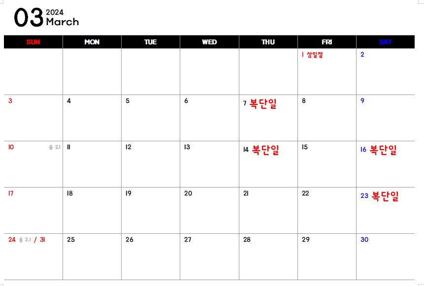 ▼▼아래에서 2024년도 복단일 날짜 달력을 무료 다운로드 하세요~▼▼