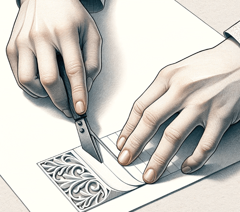 한지의 상단을 전통적인 모양으로 잘라내어 지방의 형태를 만듭니다. 이는 일반적으로 손으로 찢어내어 자연스러운 모양을 형성합니다.