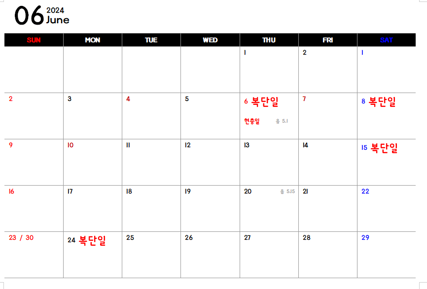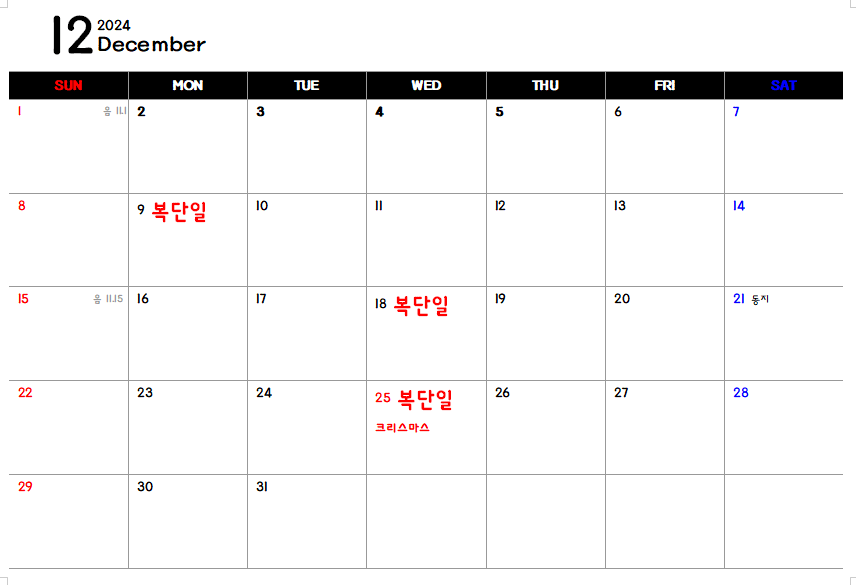 ▼▼아래에서 2024년도 복단일 날짜 달력을 무료 다운로드 하세요~▼▼